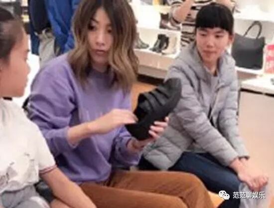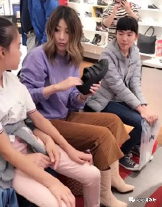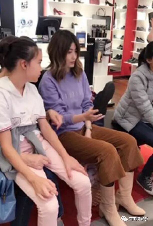 陈慧琳去鞋店买鞋,和两个小年轻讲着什么,虽然不是自己的孩子,俨然变成了老妈样