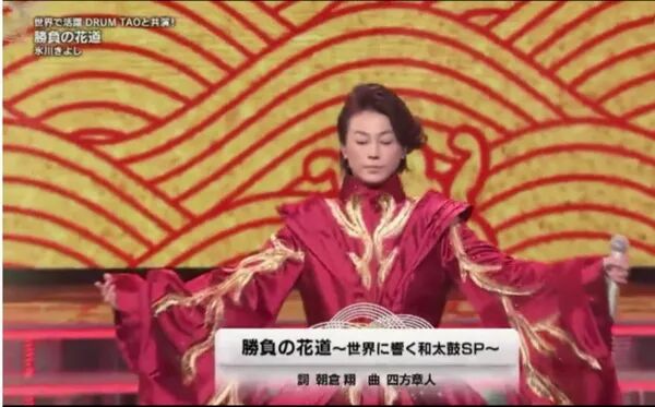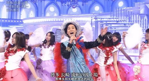 在这种情况下,演歌在“红白歌合战”的地位也越发尴尬。“红白”上有过演歌歌手较多的时期,在平成的第一届“红白”(1990年)里,演歌歌手在全部歌手中尚且占据了半壁江山以上,但对于收视率日渐走低的红白歌合战而言,要唤回离开的年轻观众,让年轻观众喜欢的歌手多出场自然是题中之义。结果,在“最后的平成红白”上,演歌歌手的比例已经降到了不足四分之一。不但是数量上在无可奈何地萎缩,“红白”上的演歌歌手在演唱时,也越来越依赖舞台效果而不是歌曲本身来提高收视率。到了第69届红白歌合战时,伴舞之于演歌歌手已是稀松平常之事。譬如为丘绿伴舞的畠山爱理是人气很高的前体操运动员;而山内惠介在前两年连续由女子偶像团体(乃木坂46与Akb48)伴舞后,本次改由“红白”初出场的“刀剑男士”伴舞。