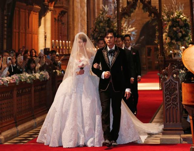 周杰伦曾表示会在36岁生日前成家,周董和昆凌的婚事已准备有数月,亲友们也陆续分批飞往海外。据悉,两人于北京时间昨晚11点半(英国时间下午3时半),进行交换婚戒、誓词等仪式。2人穿着订制礼服,昆凌白纱现身,美丽动人,双方父母皆到场,50余位亲友也在旁见证,女方好友方志友、孙睿担任伴娘,伴郎则是Darren和健身教练浩克。至于蜜月旅行,昆凌曾表示最想去的意大利卡布里岛上“上帝的藏宝洞”的蓝洞,曾说过想尽快生小孩、组织家庭的周杰伦,可望把握蜜月,全力拼出羊宝宝。