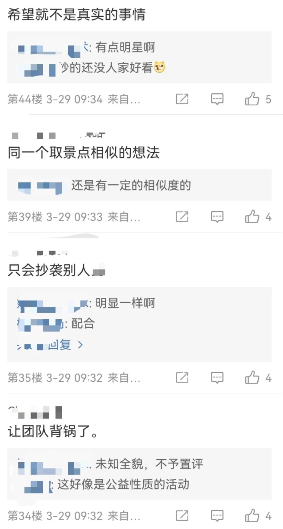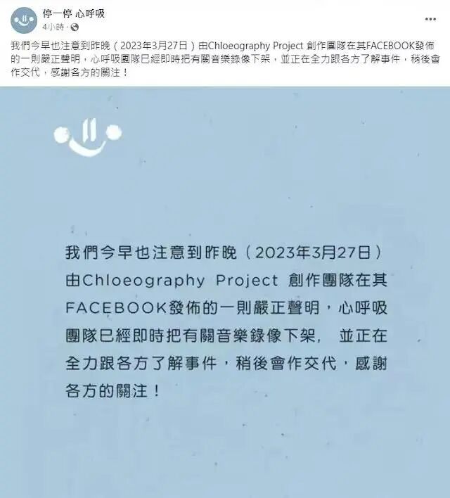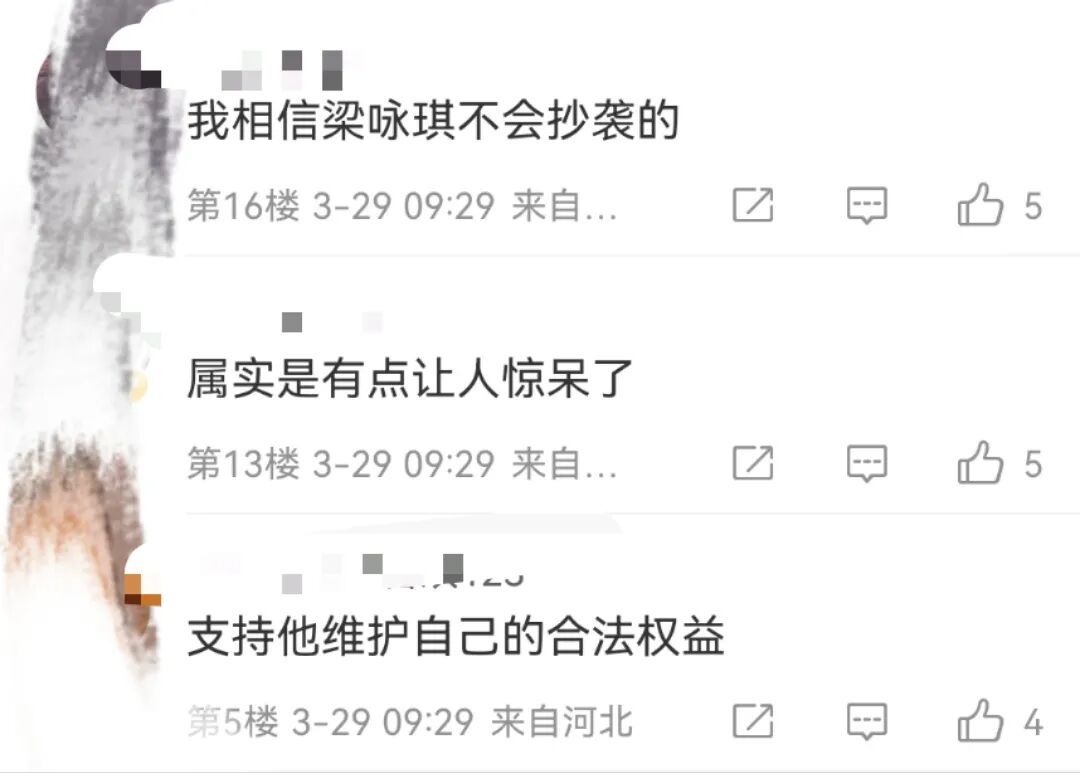 梁咏琪,有麻烦了! 锦观新闻 港台女星 2023-03-29 22:48:43 234 创作不易,用心坚持,欢迎请BaGua喝几杯爱心咖啡!打赏并支持本文 打赏并删除本文 许久没有新作品出炉的“玉女天后”梁咏琪近日发布了一首名为《停一停·心呼吸》的新歌mv,吸引了众多粉丝的追捧。可没想到,才过了几天,就有一个创作团队指责其抄袭,同时,导演身份也被曝光,在网络上引起了轩然大波!面对质疑声音,梁咏琪方面也回应称,已下架相关的MV,之后如有需要,会尽力配合。3月27日,香港一表演艺术工作团体发布声明,称梁咏琪的新歌《停一停·心呼吸》MV涉嫌抄袭其《遥遥之城》,并晒出两部作品MV的对比截图。从晒出的两部作品的对比图片来看,梁咏琪的新歌MV从拍摄地点、道具到构图角度等,都与《遥遥之城》有相似之处。有网友点评称,“这完全就是照搬照抄啊,根本都没有一点点自己的创意啊!”该创作团队还表示,他们没有和《停一停·心呼吸》的团队有合作授权,他们的作品也没有任何的商业牟利行为:“所有艺术创作人都应该尊重知识产权,对于这次侵权行为,我们表示极度愤怒及遗憾。我们要求侵权方/不正当抄袭者把相关的概念画面移除,并作出公开道歉和澄清。团队现正保留一切从正式法律途径追究的权利。”3月28日,梁咏琪新歌《停一停·心呼吸》的MV创作团队发声明称,已下架相关的MV,“目前团队已经把所有相关的MV进行下架处理,正在了解整个事件的详情,之后会作交代。”梁咏琪的经纪人随后也回应称,梁咏琪并未参与MV的创意部分,而MV的后续处理,会交回MV团队,“如有需要,我们会尽力配合。” 截至记者发稿时,梁咏琪的个人社交平台都全部删除了新歌MV的内容。据悉,梁咏琪这首新歌的MV导演是演员林嘉欣的丈夫袁剑伟,袁剑伟是香港著名的MV导演,曾先后执导过张学友、彭羚和周慧敏等歌手演员的MV作品,除了拍摄MV以外,他还拍广告和拍电影,2019年拍摄的电影《死因无可疑》获得第12届澳门国际电影节最佳编剧奖、最佳导演奖的提名。对此有网友表示相信梁咏琪也有网友表示这是让团队背锅对此,你怎么看?欢迎来聊聊推荐阅读崩溃了!64岁四川老人跪地求水,视频画面令人震惊佛山突发地震,震感明显!广东进入地震活跃期?会否发生5.0级以上地震?成都日报锦观新闻整合编辑 王斌校对 李怀英审核 饶竹舟监制 吴东伟综合 潇湘晨报 新闻晨报 创作不易,用心坚持,欢迎请BaGua喝几杯爱心咖啡!打赏并支持本文 打赏并删除本文 感谢您的支持鼓励,我会继续努力的!文章地址:用户邮箱:打赏金额:USDT 请输入数字点击”去打赏“,即可进行打赏支持本文章哦 梁咏琪 发表评论
