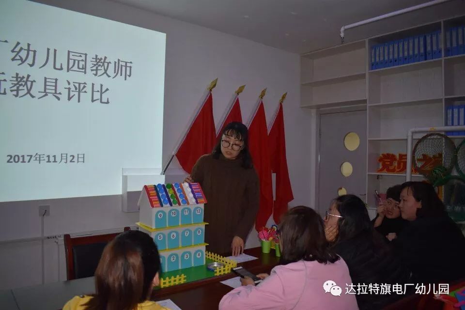 为进一步提升教师自制玩教具水平,充分发挥自制玩教具在教育教学及幼儿游戏中的作用,2017年11月2日下午,我园开展了教师玩教具制作大赛。