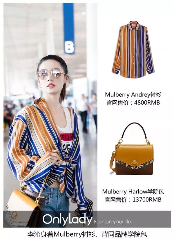 除了这套仙仙的看秀装备,私底下李沁也超爱Mulberry单品。机场街拍更少不了Mulberry的衬衣和包包,靓蓝色衬衣搭配Mulberry全新Harlow系列学院包轻松灵动,活力十足。