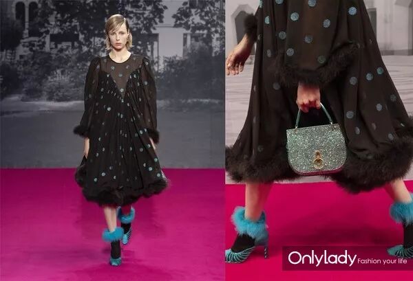 李沁:今天看秀穿的是一身紫色系的非常可爱的蓬蓬裙,也是我之前没有尝试过的一种感觉。这次跟Mulberry的合作让我有机会能展示不同的自己,我觉得也是特别的好。