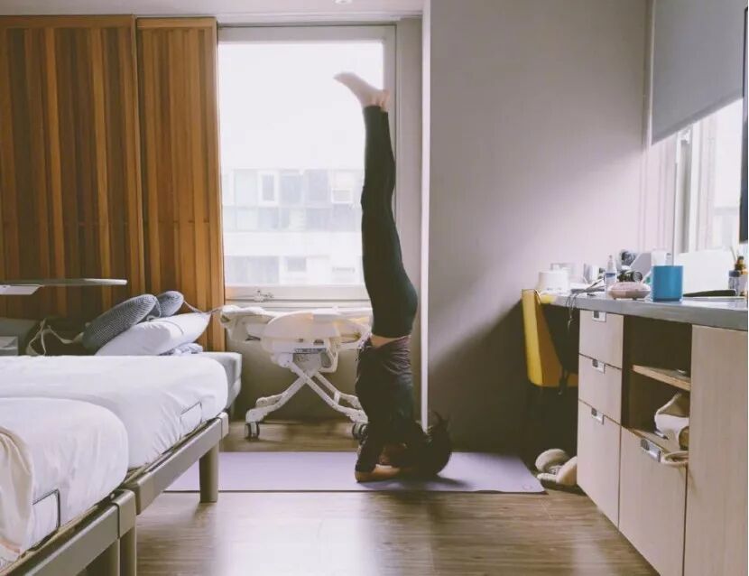 照片上的她,跟其他的妈妈不大一样,她才刚坐完月子,就开始在锻炼身体,练习倒立了。