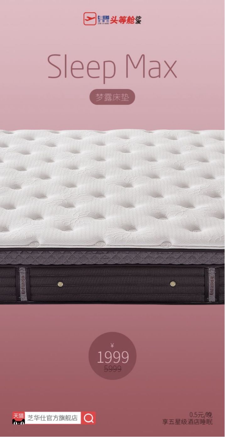 最近又出了一款升级版“芝华仕SleepMax床垫”,除了以前的静音功能外还加上了5厘米加厚乳胶和银离子天丝面料,防螨抗菌更胜一筹!