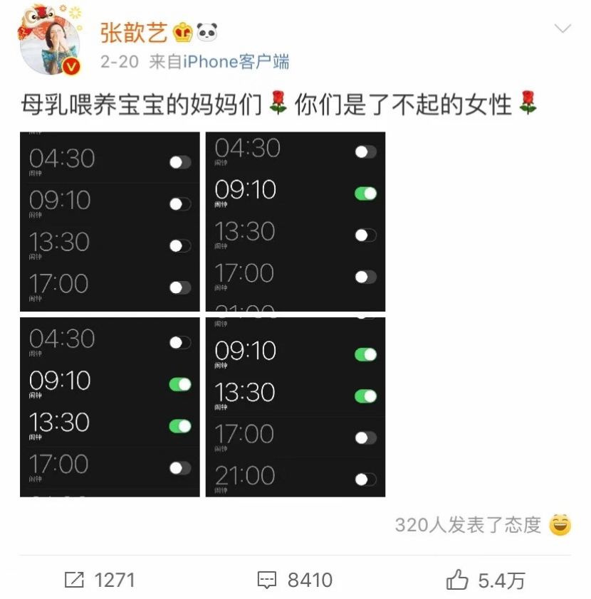 前段时间,女星张歆艺在微博上晒出了自己的闹钟时刻表。