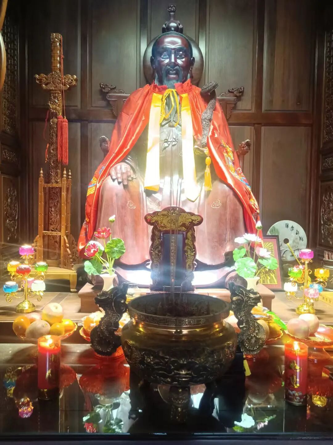 八十三化,九宫法主。承天师之正脉,开御制之玄宗。符动则甘霖沛,咒临则沉疴消。解宫廷之厄,彰真牧之名;退金虏之兵,显不坏之身。奉旨立观,瑞庆耀于江南;留形驻世,真灵护乎社稷。五月廿日降诞,七月七日登仙。真牧堂中,石殿永驻;玄门史内,法灯长明。历朝叠敕,圣号宏道;法嗣绵延,香火恒昌。大悲大愿,大圣大慈。九宫开山祖师,太平护国真牧妙应普兴宏道真君。