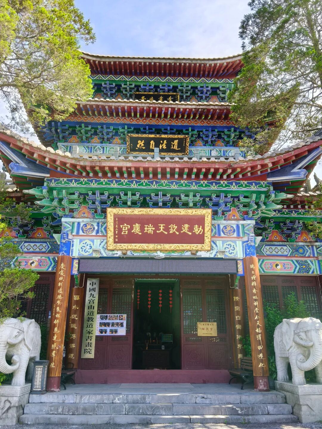 庆元乙卯(1195年),宁宗临御。慈惠居内宫,常遣人入山,厚有赐赍。李府御带,亦捐缮资。经之营之,斧斤不辍,不数年,新构落成。殿则:三清、玉帝、三官、五岳、三王、龙神;阁则:混元、九皇;堂则:佑圣、天师、天光、道统、真官;楼则左钟、右鼓,次而,方丈、库厅、斋厨、云室、宾馆等。莫不轮焕一新,丹青炳焕。