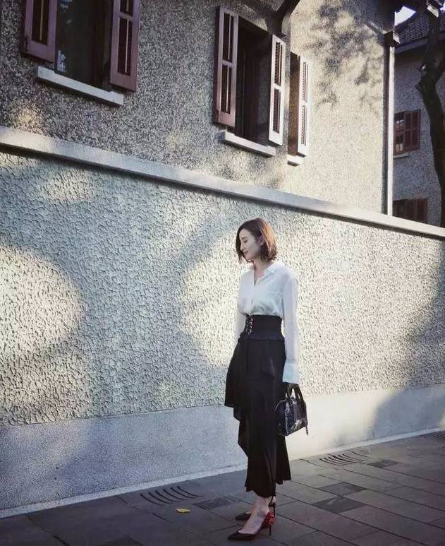 白色衬衣,黑色长裙,一个手包,一双高跟鞋,时尚从来都不复杂。