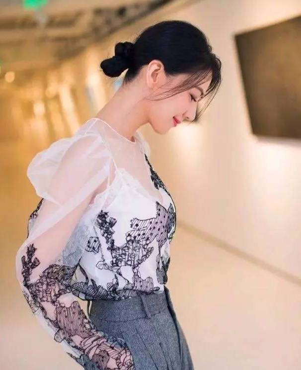 半透上衣加上宽松长裤,浅色系搭配起来给人一种清水出芙蓉,天然去雕饰的清爽。
