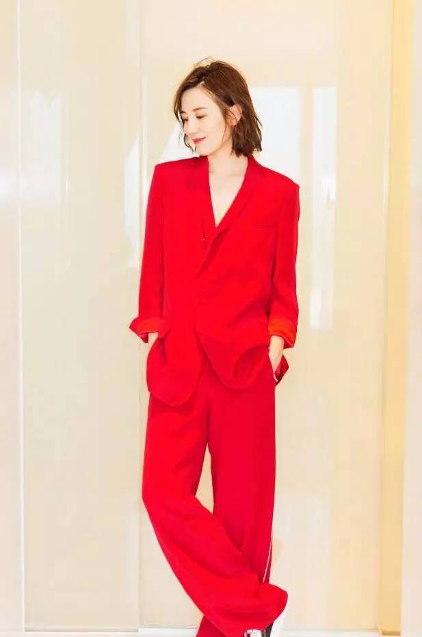一身高调的红色休闲西服加上一双简单平底鞋,既有西服的典雅又有休闲的舒适感,追求时尚的你有没有勇气挑战这身搭配?