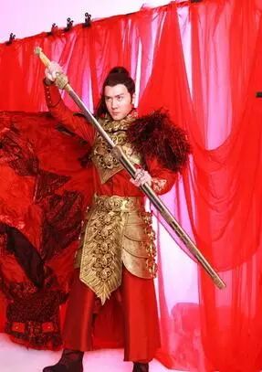 乔振宇是五官外形极其标致的男星,红衣穿在他身上,衬托得人物性烈如火,令人喜欢。