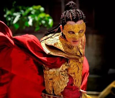 冯绍峰饰演的兰陵王,因为是历史上有名的容貌俊美,所以战服和常服都以红衣为主,意在衬托人物的俊美,铠甲造型是不是很帅?