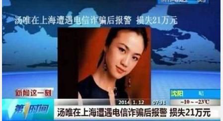 骗局里电信诈骗有很多,之前演员汤唯就遭遇过电信骗局。当时在上海某剧组拍戏的她,收到一条“警方”短信,一时慌乱的她也没有多想,就去银行转了21万给对方,后来发现自己被骗了,便赶紧报警。