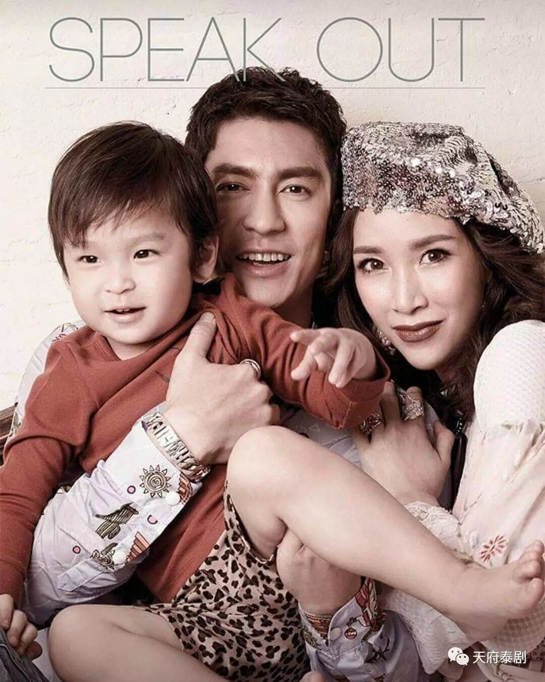 这是这家人难得向媒体公开的私下照片,很简单,也不讲究什么光线和色彩。除了Tik依旧帅气、Peach更美了之外,小Tent也超可爱的!