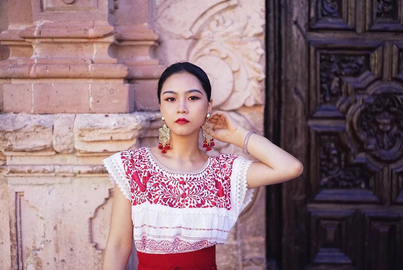 上个月我在西班牙,想画一个弗里达风情的妆,用了黄土地的底色、粗犷幽黑的眉和深红的唇。