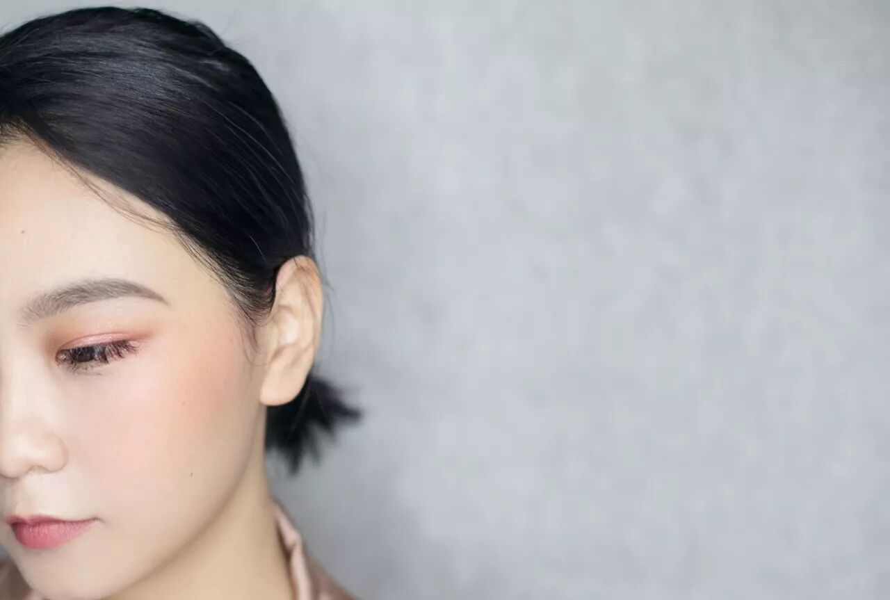 这次的底妆部分,要通透的白。这里不太适合古铜色,因为底色浅才能凸显出微醺的玫瑰粉,太深了就夺去了重点(不是说越白越好,只是更适用于这个妆容)。但死白、粉白都是不妥的,定要是从皮肤底层透出来的轻薄的白亮。