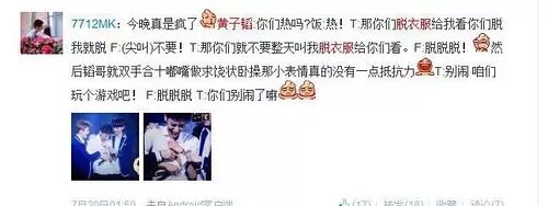 2014年7月19日 THE LOST PLANET演唱会上海站,黄子韬在舞台上对女性居多的粉丝们说“把衣服脱下来给我看”。
