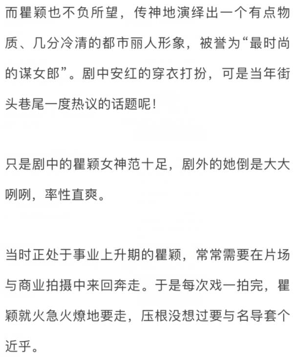 了解瞿颖的人都知道,她就是一个野心不强的人,同样的资源,别人都想着如何上位,她倒是两袖清风,随缘而来,缘散则潇洒离去。