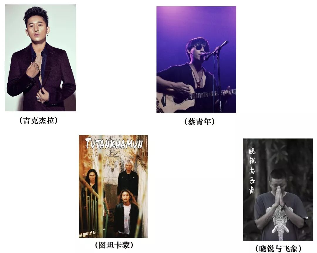 吉克杰拉、蔡青年、图坦卡蒙、晓锐与飞象,将代表新生力量征战本次芒果音乐节,构成了攀枝花芒果音乐节备受期待的丰富音乐板块。
