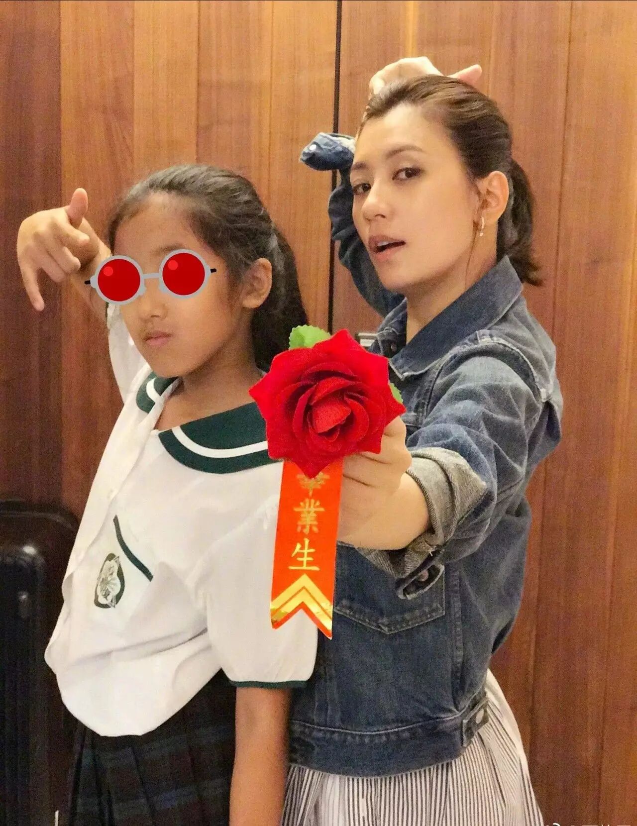 终于在小bobo满百天这天妈妈公开晒出了正面照,果然不负众望又是个大眼萌娃!贾静雯家的三个女儿都很会遗传啊。大女儿梧桐妹虽然不能曝光,但是人家小时候就很可爱。最近家人还一起参加了她的毕业典礼。