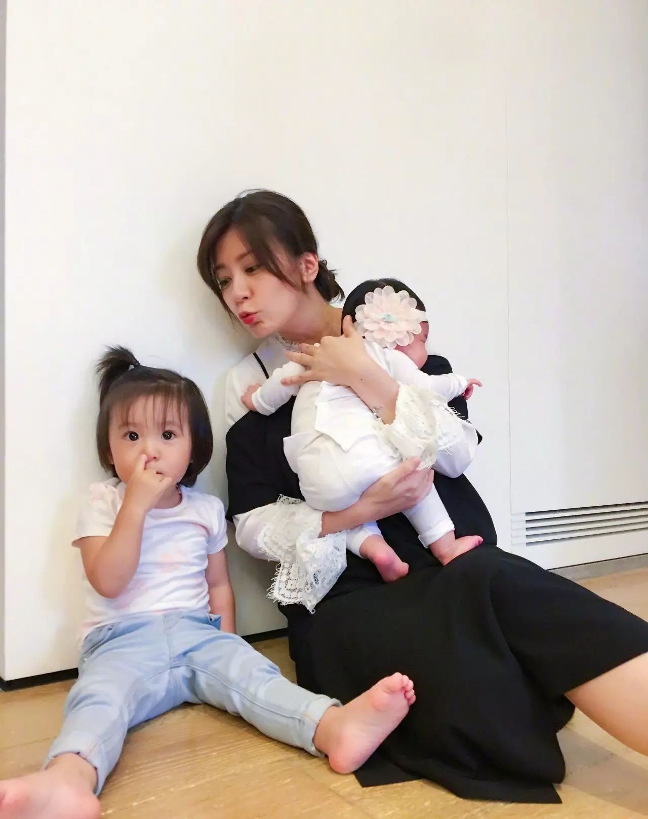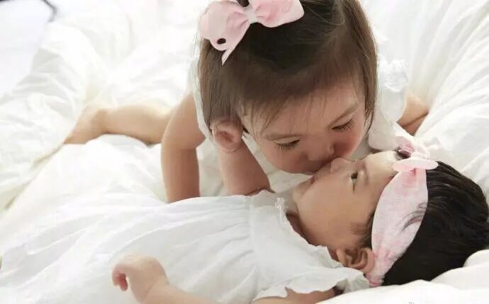 跟姐姐一起的合照,也只有一个肉肉的背影给大家。(治愈的咘咘连挖鼻孔也这么可爱!)