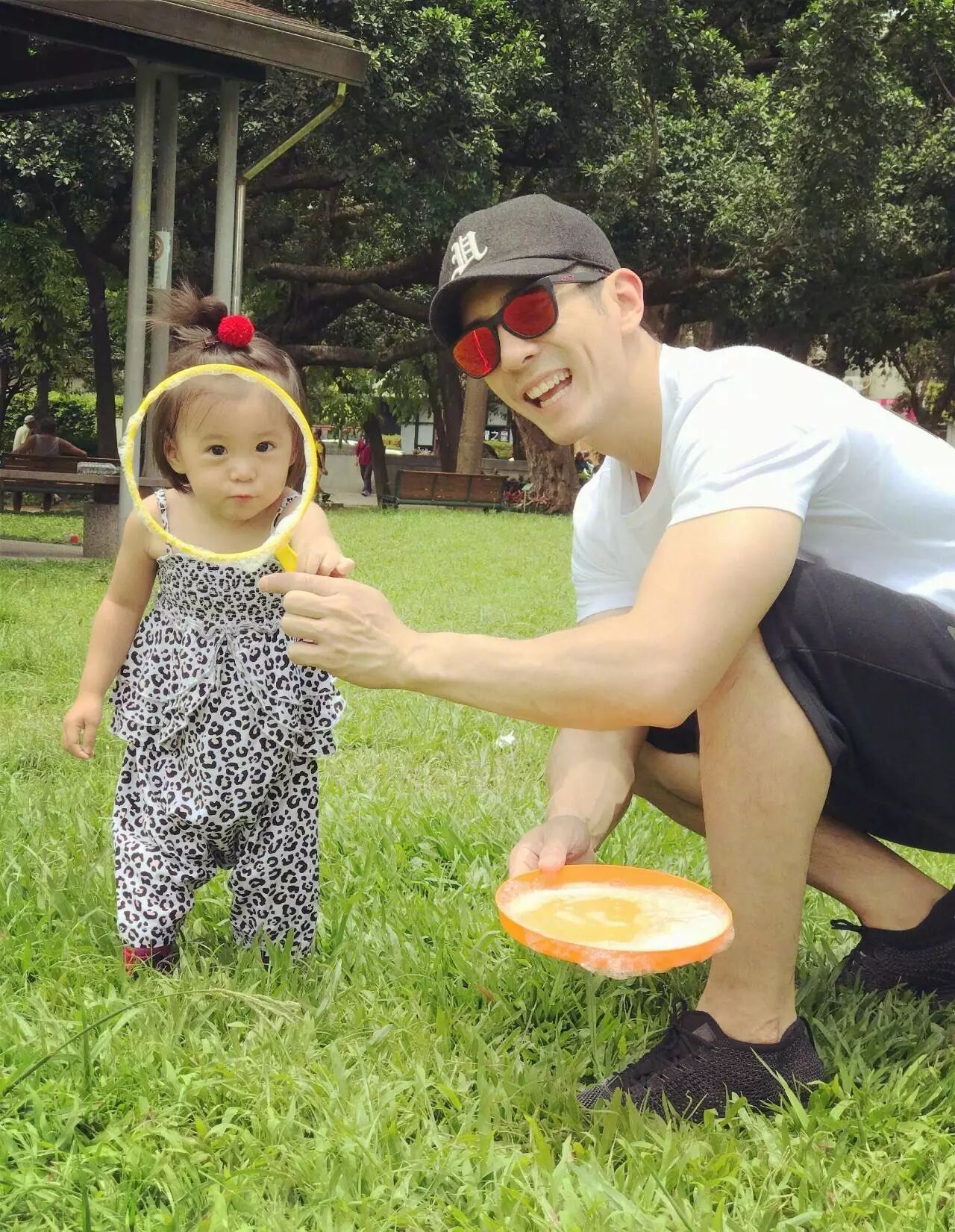 跟着爸爸妈妈一起做鬼脸的咘咘也是治愈的。再烦闷的心情看到这样一张可爱的笑脸也会被化解吧。