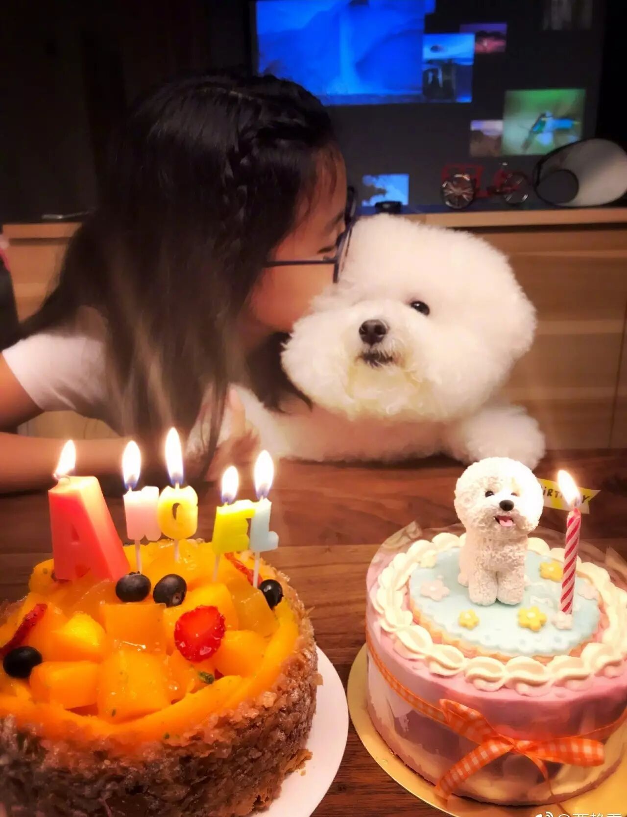 不久前她也刚过了生日,而且梧桐妹的生日愿望还是给自己的小狗狗也过一个生日,两个小可爱放在一起真治愈。