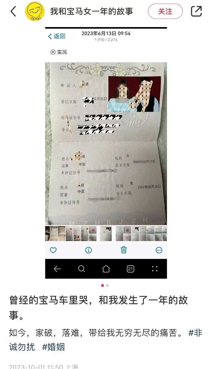 坐宝马里哭的马诺,嫁给榜一大哥后 她讯 内地女星 2023-10-11 23:47:41 376 创作不易,用心坚持,欢迎请BaGua喝几杯爱心咖啡!打赏并支持本文 打赏并删除本文 13年前,最火的恋爱综艺《非诚勿扰》中,一位女生凭借一句:我宁愿坐在宝马车里哭,也不要坐在单车上笑,而闻名全国。她叫马诺,被大家戏称为宝马女,成为拜金女的代名词。之后,她的发展之路也一直伴随着网友的口诛笔伐,长达十几年的时间。网友们也感慨道:那档综艺里唯有这女生留给80后的记忆最为深刻。因为事件女主角马诺,本身就是学表演出身。在这件事带给她许许多多的曝光和流量以后,她也顺利步入演艺行业。虽然造型有点杀马特,可颜值还是不错的。在许多参加过的节目中,马诺堪称颜值担当。现如今,将近十年的光阴已经过去,马诺早已不再是当年那个口出狂言的少女。消失许久的她,近些年也并未消停。随着短视频行业的崛起,她也成功凭借当年的事成为了一个小网红,在直播行业风生水起。现在是标准的网红脸,她的日常不是在某奢侈酒店,就是晒网红风自拍。作为北京人的马诺,说话口音浓浓的北京腔,她在直播间幽默风趣的风格,让她收获了不少粉丝。可以看得出,视频里的她总是喜欢穿着旗袍,将她的身材线条勾勒地很好。有时,她会骑着自行车在北京的小胡同溜达。网友们纷纷在她的评论区留言:马诺,你变了,怎么在自行车上笑了?也有人提醒她:要不忘初心啊!最近,网上突然曝出疑似马诺丈夫的一篇文章,标题为《我和宝马女的一年》,里面详细讲述了自己和非诚勿扰前女嘉宾马诺的故事。文章爆料,在自己有妻子的前提下,马诺就和自己纠缠不清。包括自己为了马诺与前妻离婚后,马诺与其他男生暧昧不清的种种狗血剧情。不仅如此,该男子为了证实自己所说属实,还晒出了与马诺两人的结婚证。两人在抖音上认识,老公算是宝马女的榜一大哥。虽然此事在网上传的纷纷扬扬,但翻开马诺个人社交账号来看,她似乎并没有受到多大影响,仍然按部就班的拍摄视频分享日常。如今看来,与其说坐在宝马车里哭看起来是句笑话,倒不如说等它真正放在现实生活里时,更像是一场悲剧。三观不正的女孩将走捷径当成人生登顶成功的路途。殊不知,它或许是走向深渊的歧途。 创作不易,用心坚持,欢迎请BaGua喝几杯爱心咖啡!打赏并支持本文 打赏并删除本文 感谢您的支持鼓励,我会继续努力的!文章地址:用户邮箱:打赏金额:USDT 请输入数字点击”去打赏“,即可进行打赏支持本文章哦 马诺 发表评论