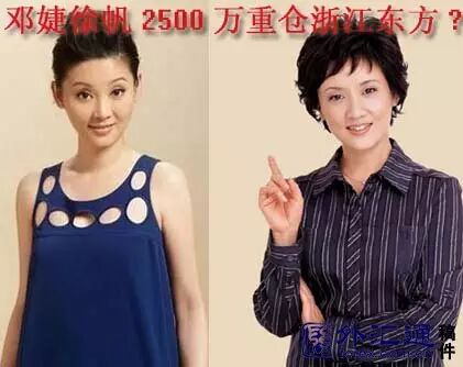 据《证券日报》报道,有知情人士透露,徐帆、邓婕入主浙江东方,主要是受过“高手指点”,让她们提前进入潜伏,以待重组消息公布后狂赚一把。对这个“高人”身份,这位知情人士没有透露,但透露这位“高人”和邓婕的老公张国立以及徐帆老公冯小刚有来往。