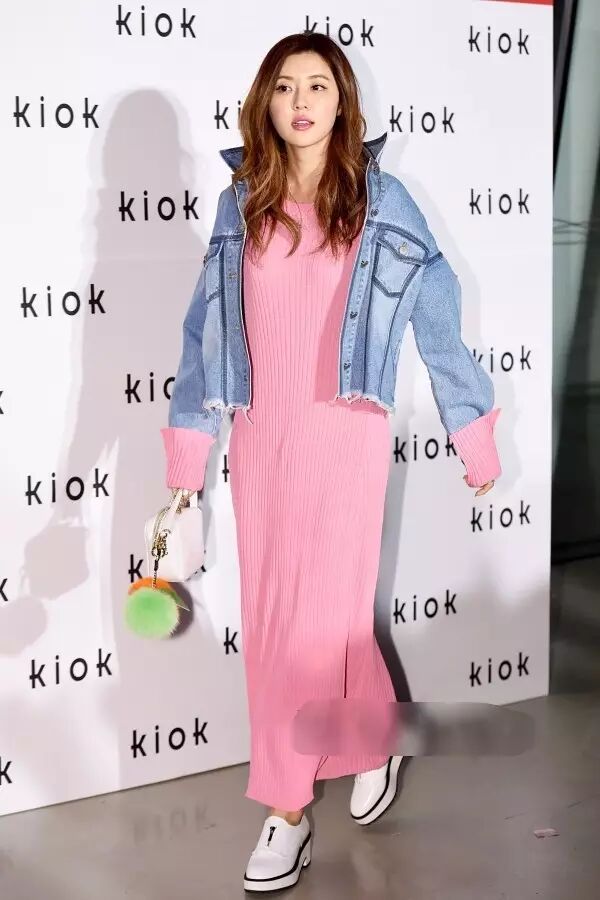 演员朴寒星同样选择了连衣裙搭配牛仔外套,这领子,和村头洗剪吹身上的Polo衫领子一样,打算戳破天。