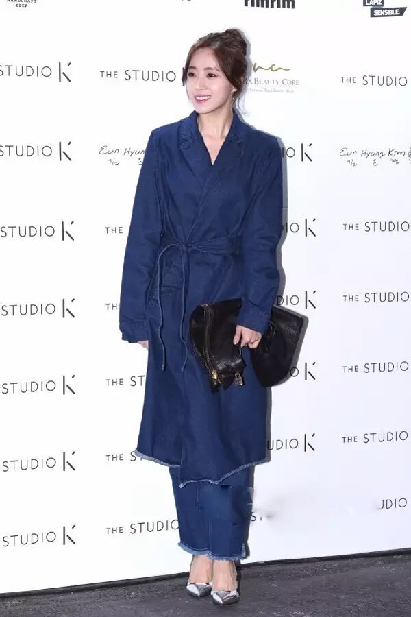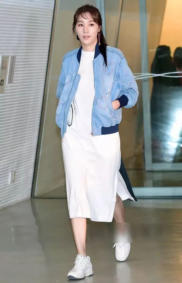 模特出身的尹智敏选择了穿连衣裙配牛仔外套