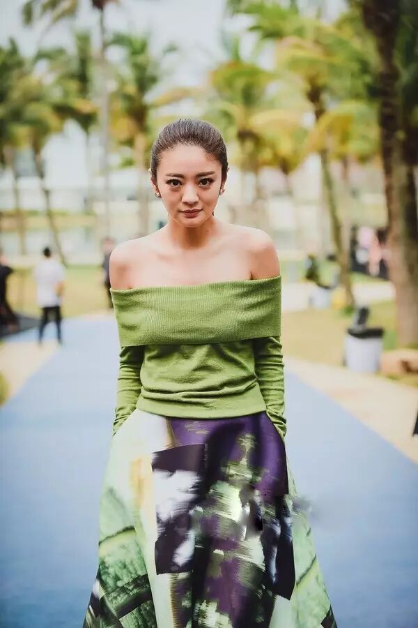 不过她这衣服穿得不错,芥绿色一字领的针织衫加上彩色印花大伞裙,清爽大气也很符合M.HITI錫瑅今年的秀场主题“自然,印象”。