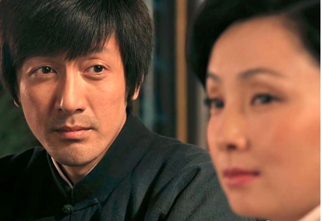 《红色》里,他饰演徐天,是个大隐隐于市的人物,表面看起来人畜无害,齐刘海儿,一身长衫,是个菜市场的小会计,下班买菜烧饭做家务,一口吴侬软语,典型的上海小男人做派。