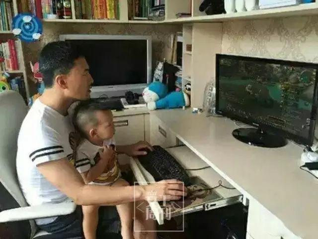 赫子铭微博上发孩子照片的频率比较低,还有这样带孩子的姿势:自己打游戏,让孩子坐怀里看。