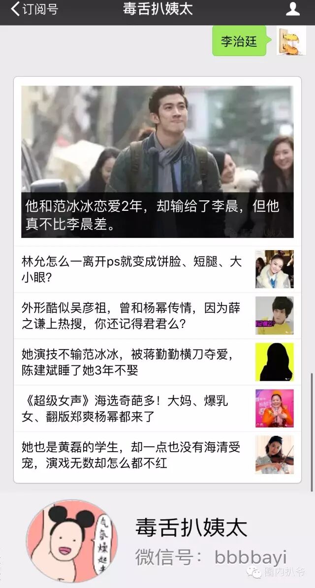 看扒爷一个人讲八卦腻不?来关注扒爷CP,毒舌扒姨太吧!一手明星猛料,时尚小公举,最浪毒舌妇就是她! 关注后回复关键词:【李治廷】 就有猛料哦!