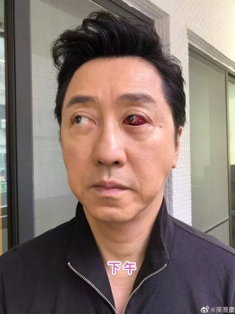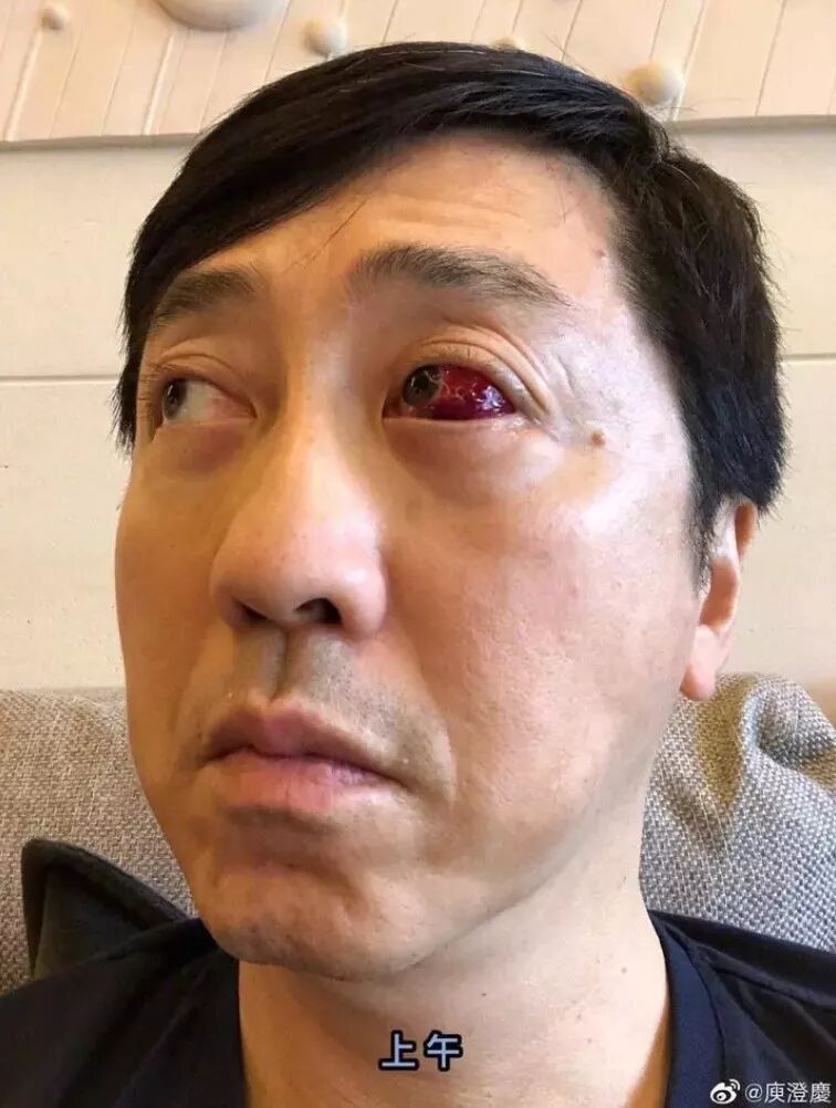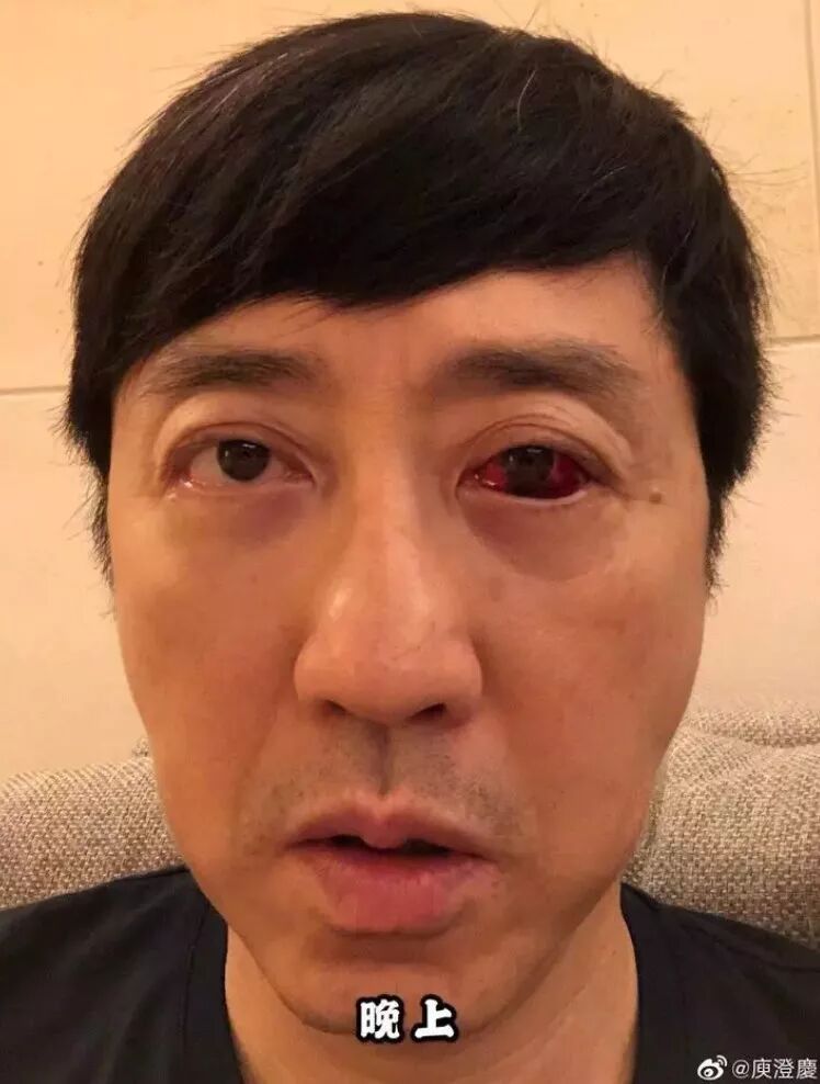 从庾澄庆自曝当天上午、下午和晚上的状态照片显示,其左眼球布满血迹,看上去略显惊悚。