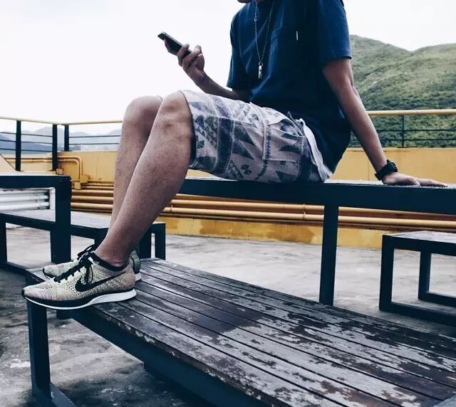 Nike Flyknit Racer 配色就是一道彩虹,陈老师脚上也踩着一双。