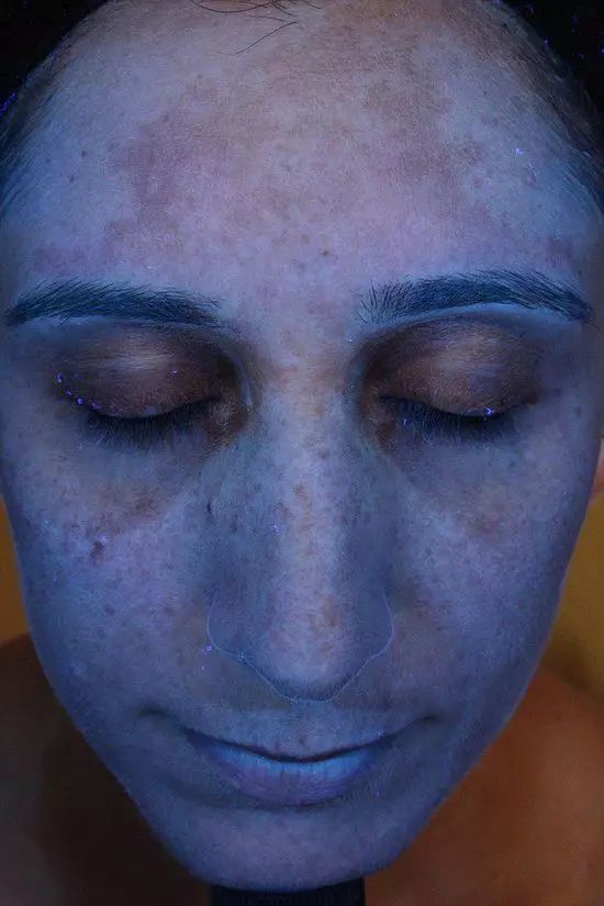 在本次实验中,卡莱尔选用了女性平时生活中较为常用的几种化妆品进行面部涂抹,并利用紫外线摄像机拍摄涂抹化妆品后的晒后面部肌肤,拍摄结果中发亮部分表示皮肤没有受到有效的保护,而阴暗部分则表示所涂抹的化妆品有效阻挡了紫外线。通过拍摄结果中面部亮暗程度,可以检测出化妆品的实际防晒效果。