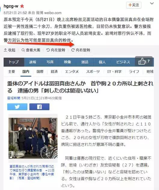 日本还发生过了一起粉丝捅伤偶像20多刀的新闻。