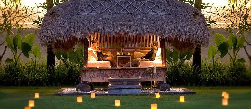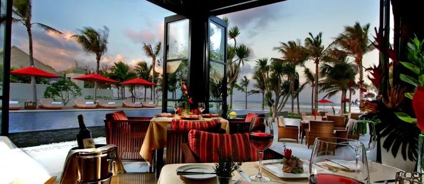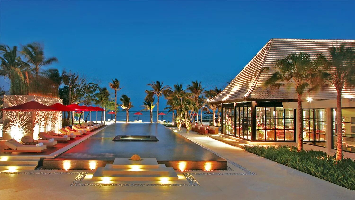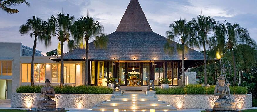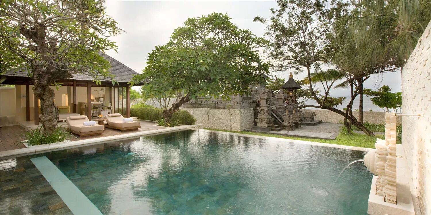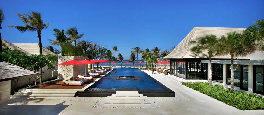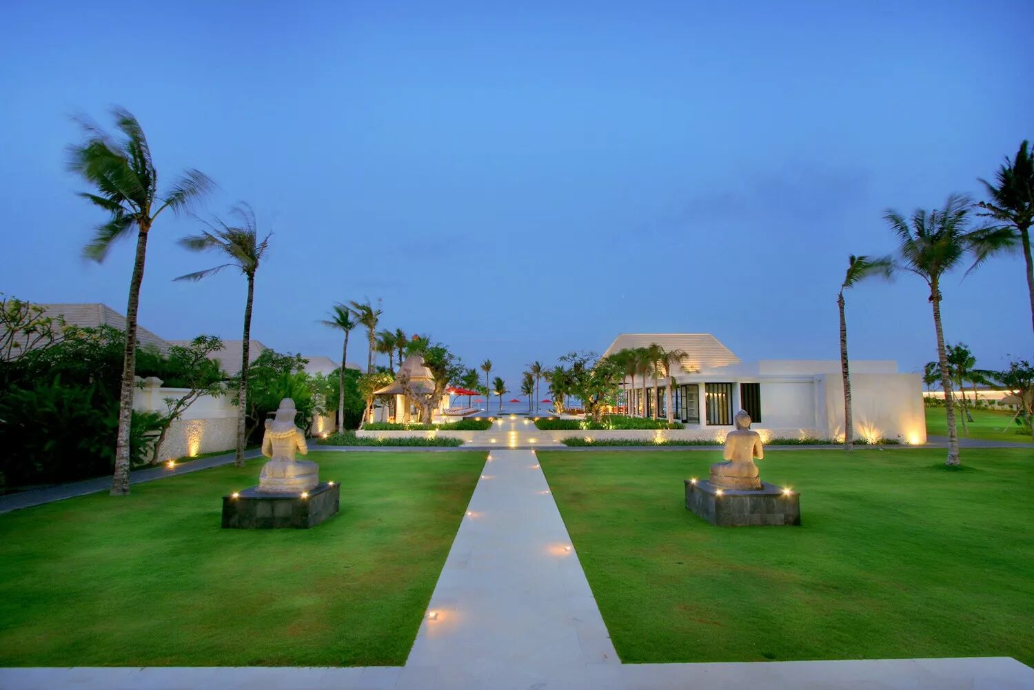TheRoyal Santrian酒店位于Nusa Dua Beach海滩的海岸边,距离巴厘岛(Ngurah Rai)国际机场有20分钟车程,是一家拥有超大沙滩和泳池以及带私家泳池纯别墅的酒店。濒海而建.里面的别墅相对饭店的较小,拥有巴厘岛为数不多的超大海滩和超大泳池的酒店.而我们的水上婚礼,则是在酒店的超大泳池中心举行,池边到中心圣台的浮动走廊可以随意的更改朝向,甚至整个圣台都可以悬空,瞬间转换为壮丽的水上空中婚礼哦! 该酒店拥有22间别墅,没有套房,villa数量非常有限,就像绝大多数的VIP酒店一样,入住之后,瞬间有一种静谧纯净的感觉