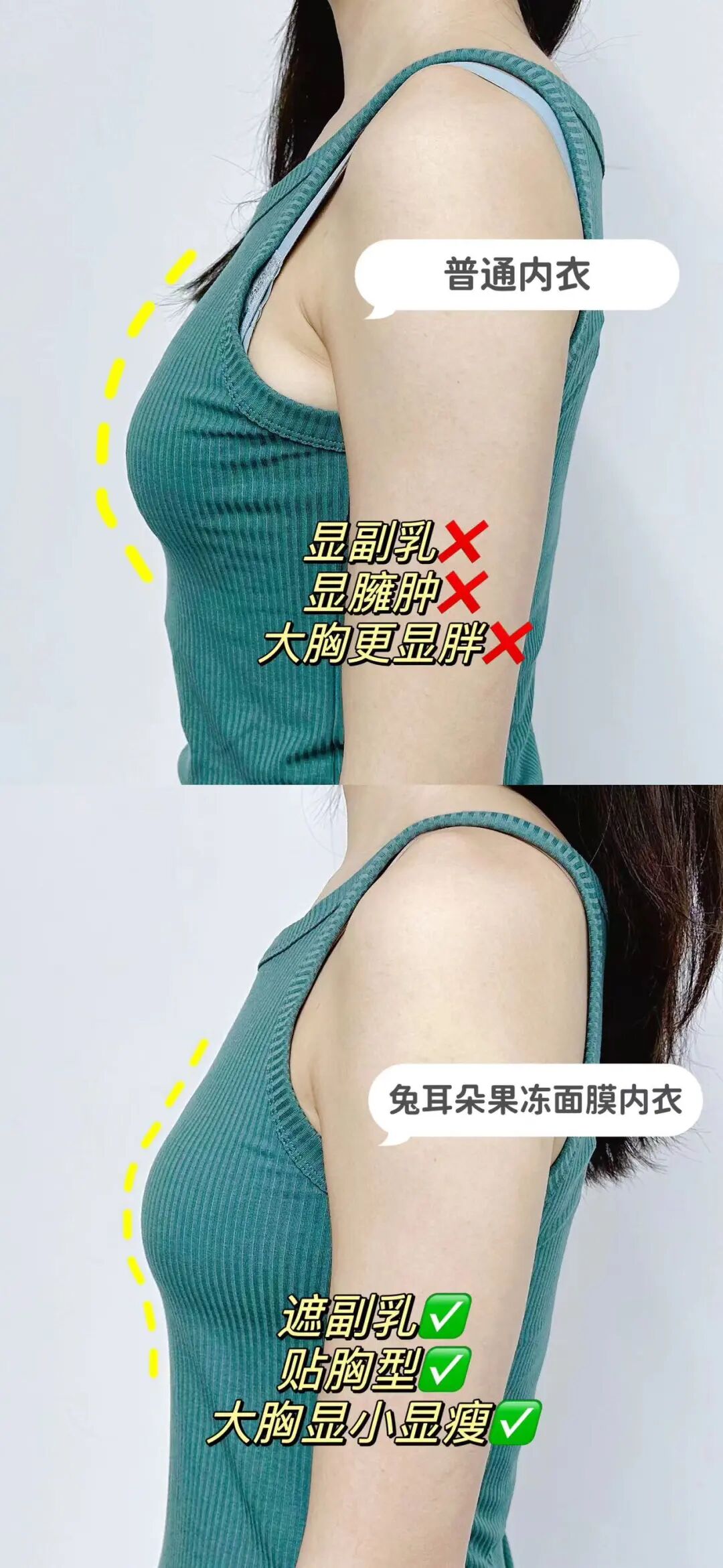 无尺码无钢圈的款式塑型效果也会踩雷,大胸托不住,显胖又显壮,小胸穿上空杯、跑杯,穿内衣变成了活活受罪。