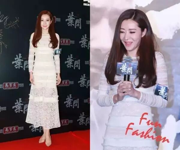 出席叶问3首映礼,蕾丝白裙优雅可人