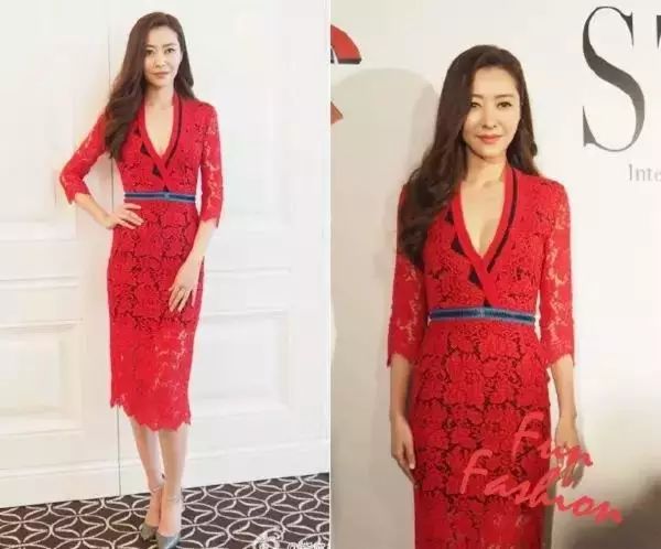 一袭大红色高腰裙以及赋予其中的浪漫蕾丝都让熊黛林穿上这裙子充满难以复制的独特之美。