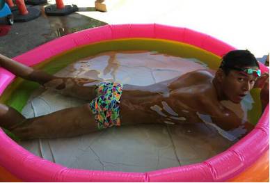这是今年6月去美国参加集训时的孙杨……