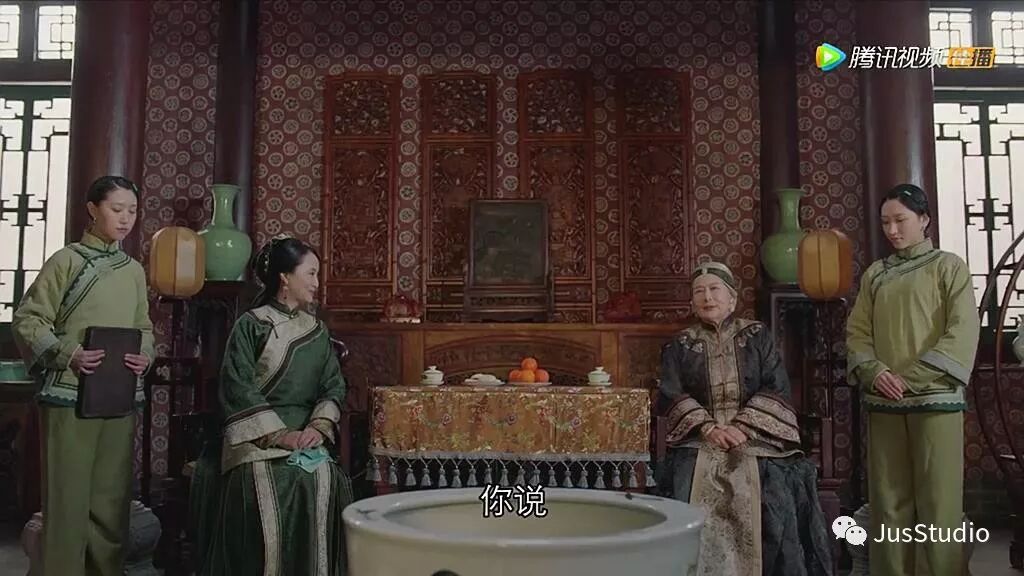 沈家下人穿着豆绿,沈母着松花绿,而诰命夫人则用了最深的墨绿色
