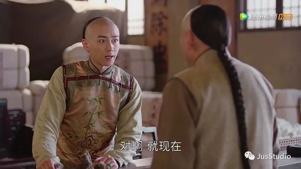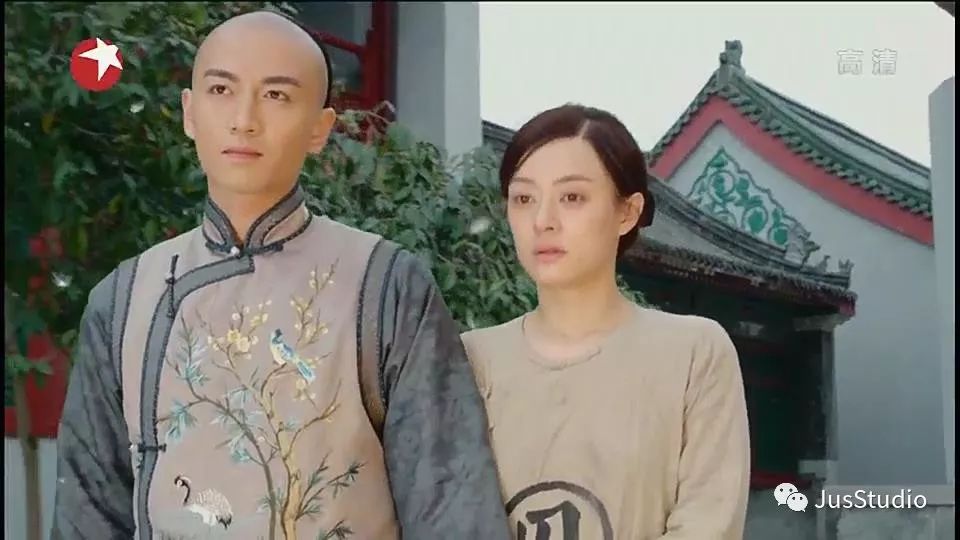 即便是穿黑色马褂的沈四海,马褂上的绣花也是松花绿