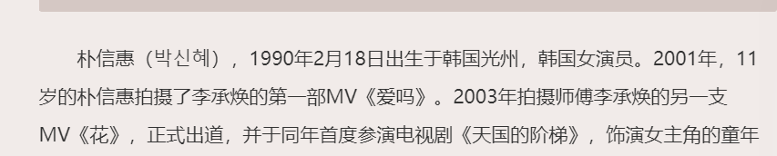 朴信惠11岁就开始跟着李承焕拍MV,还成为了他手底下的练习生。