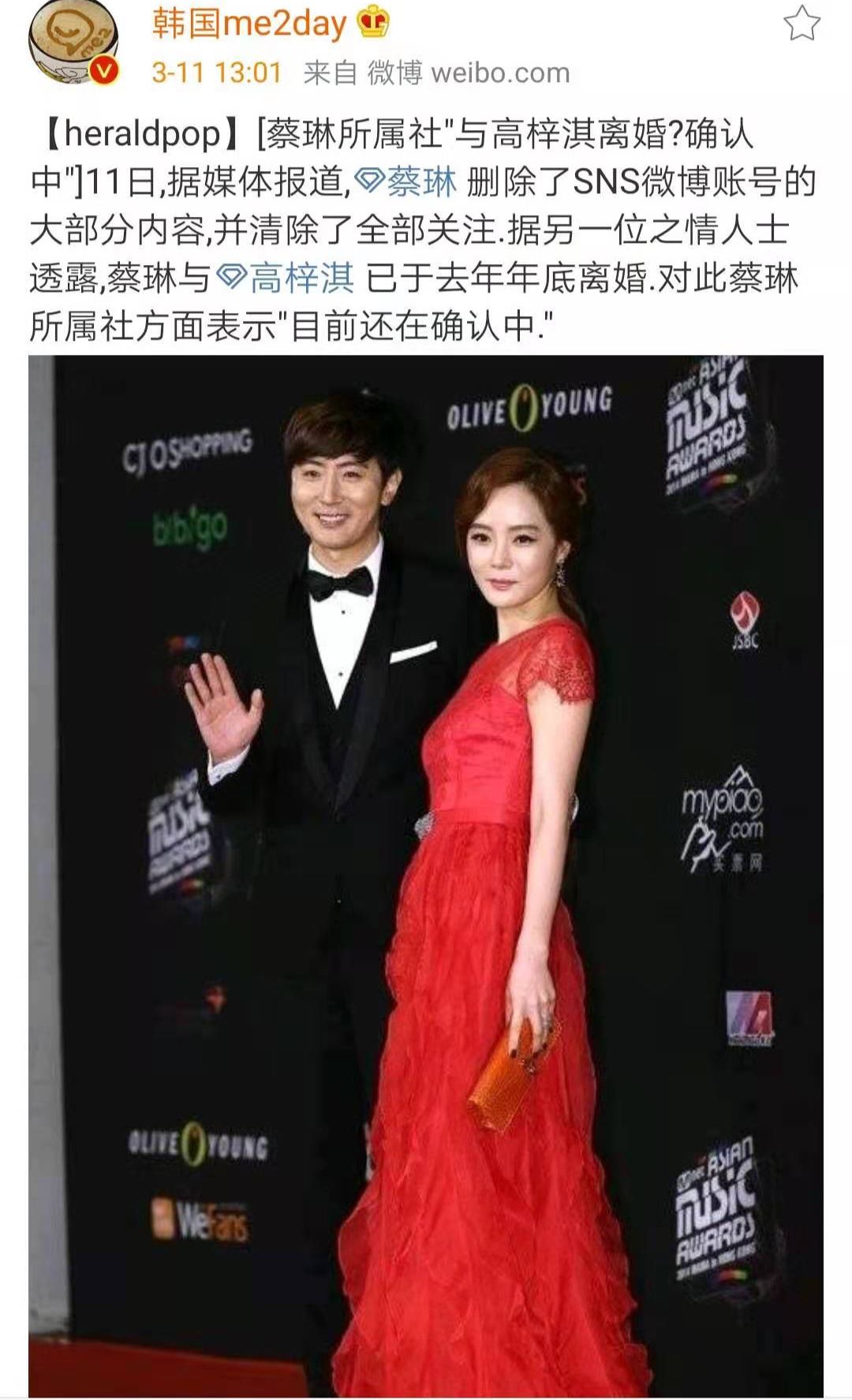 如此看来,两个人的感情似乎确实有了些说不出的问题,不过这条新闻没多久,蔡琳所属社就说两个人没有离婚。