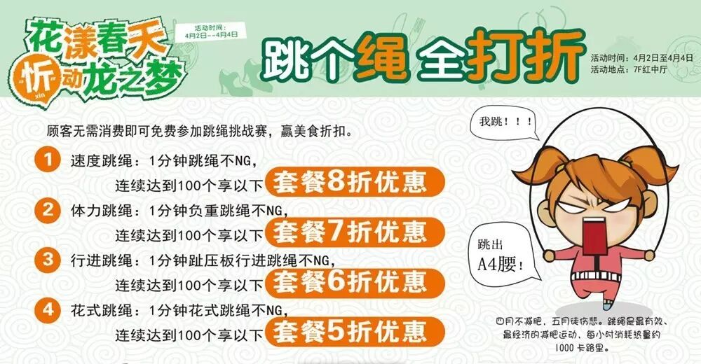 免费来跳绳,吃饭全打折